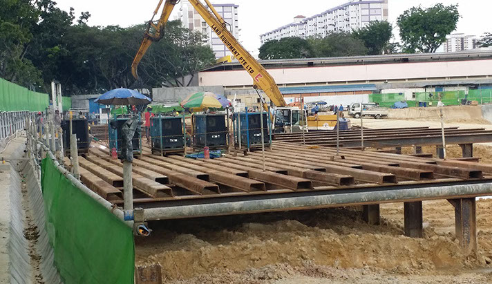 A comprehensive temporary steel decking constructed for materials storage, vehicle access & egress and working platform to expedite deeper excavation during construction work