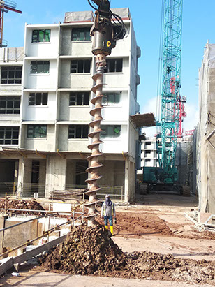 Excavator mounted auger bit machine can auger maximum 400mm diameter and18.0m length for install sheet pile, soldier and steel plate on soil condition Old Alluvium , Jurong Formation, Bukit Timah Granite (GV) . No vibration and Maximum noise level 10DBA