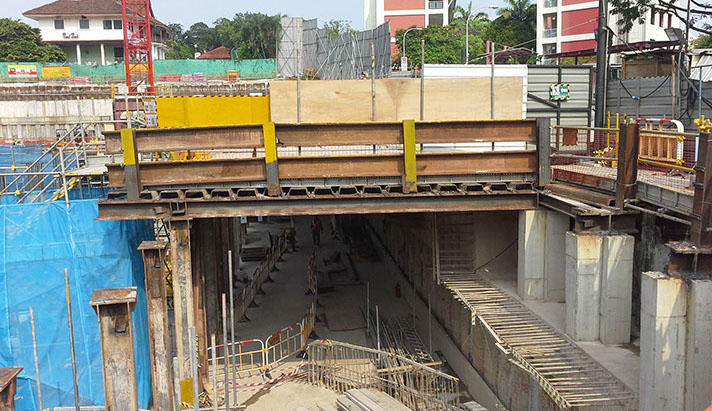 A comprehensive temporary steel decking constructed for materials storage, vehicle access & egress and working platform to expedite deeper excavation during construction work